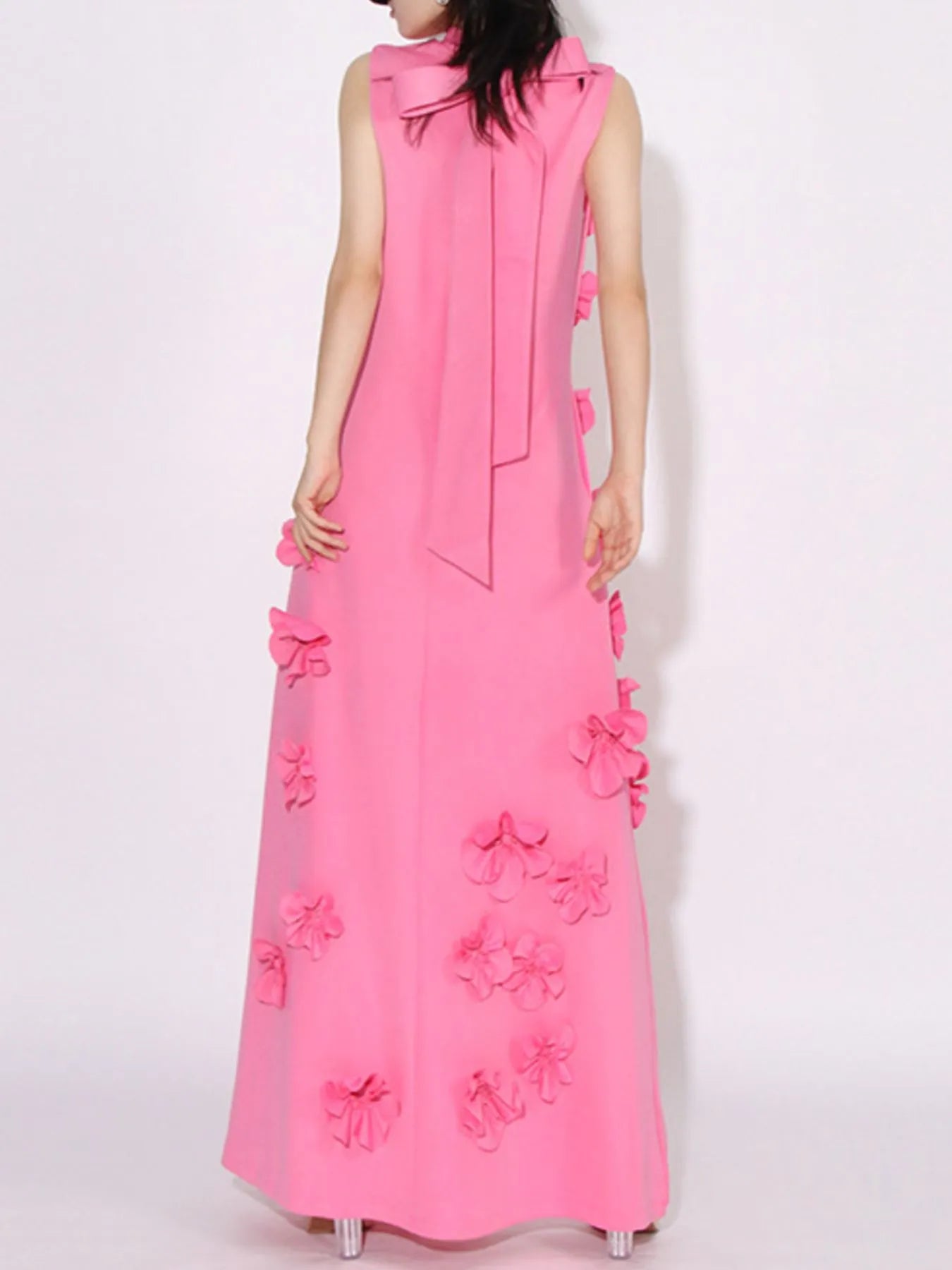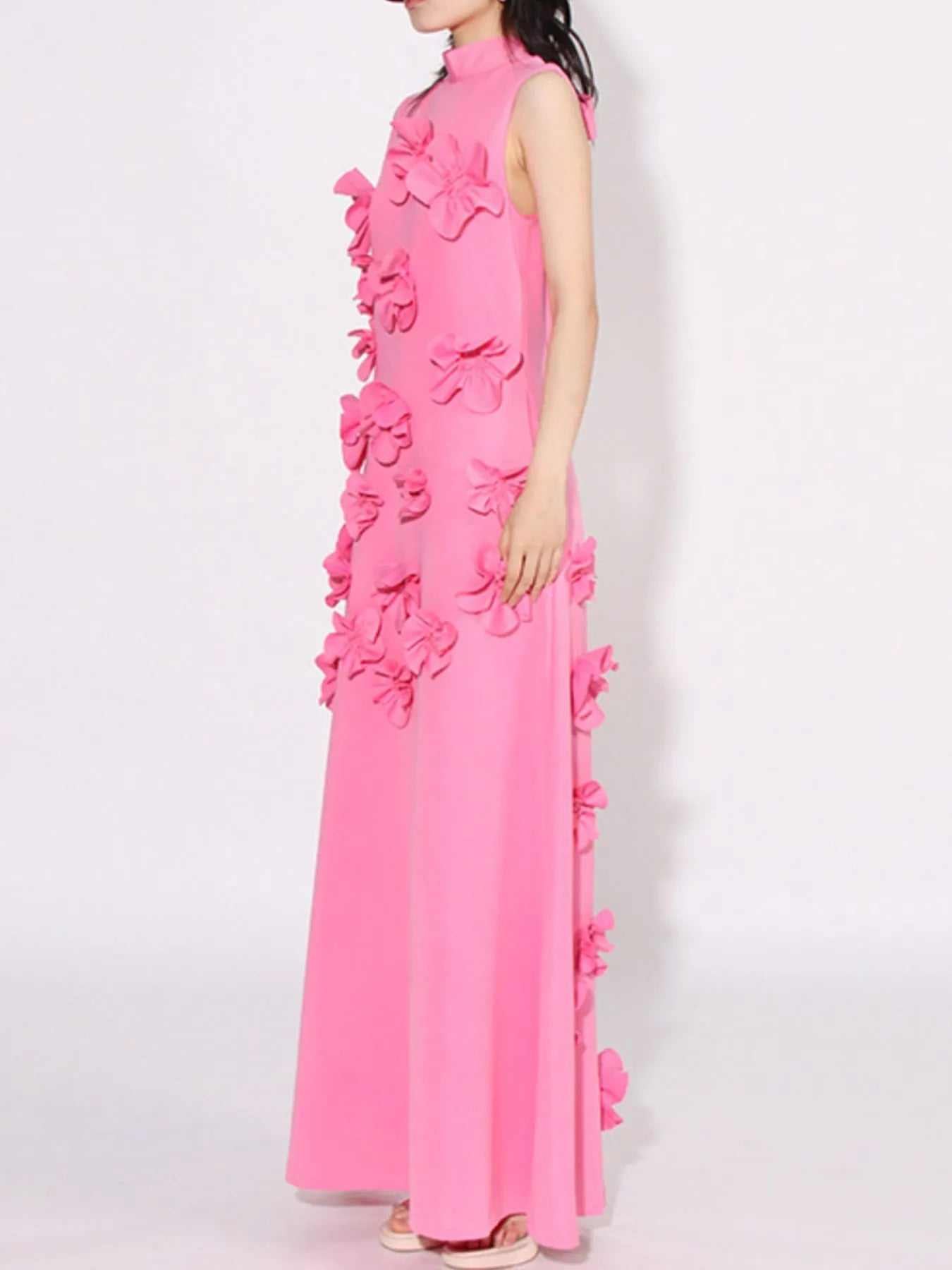 Floral Applique Mock Neck Sleeveless Maxi Dress