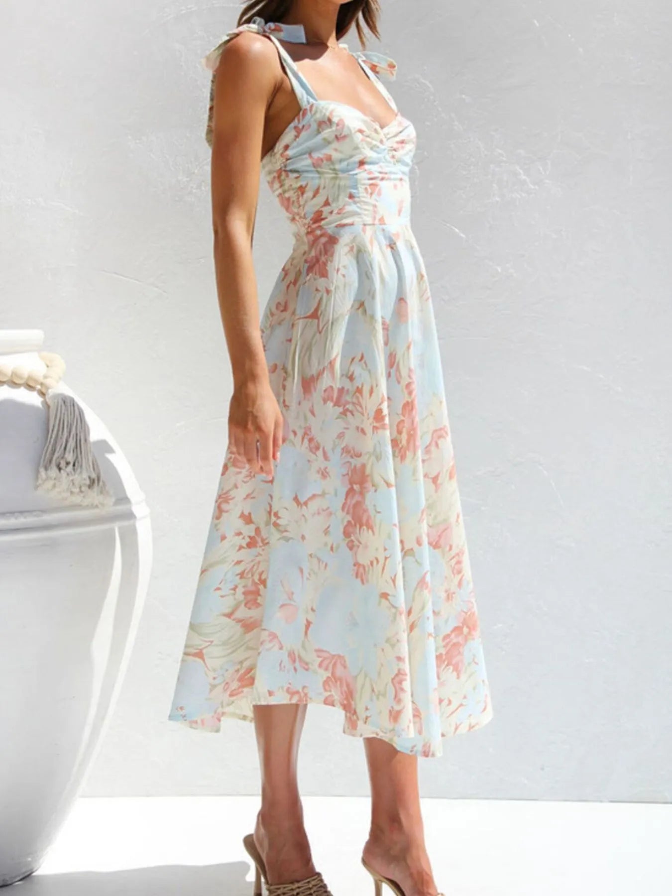 Tie-Shoulder Sweetheart Neck Summer Dress