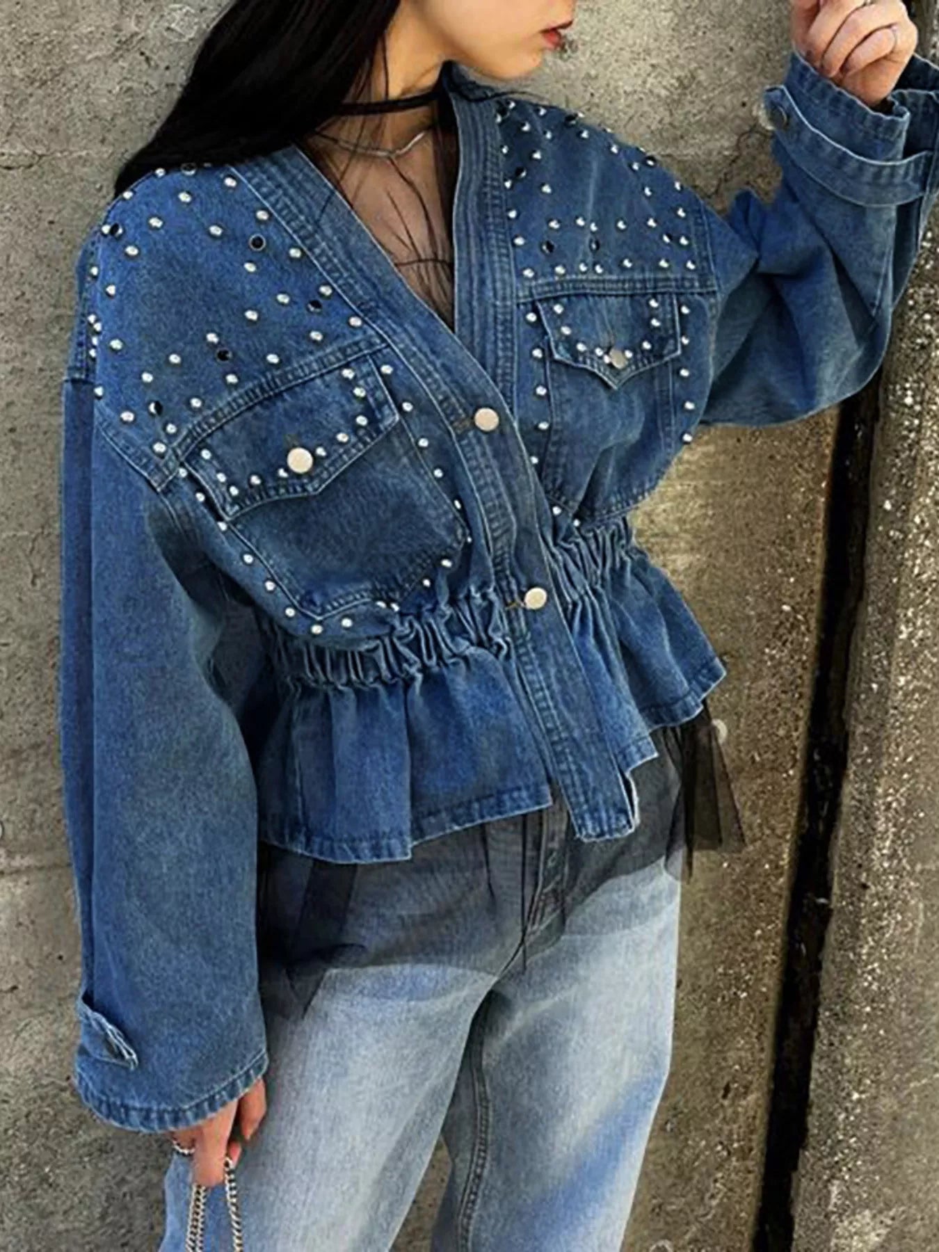 - Features:Buttoned,Studded,Pocketed