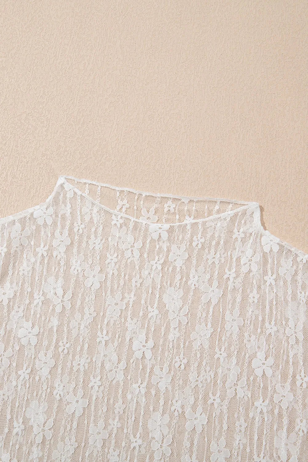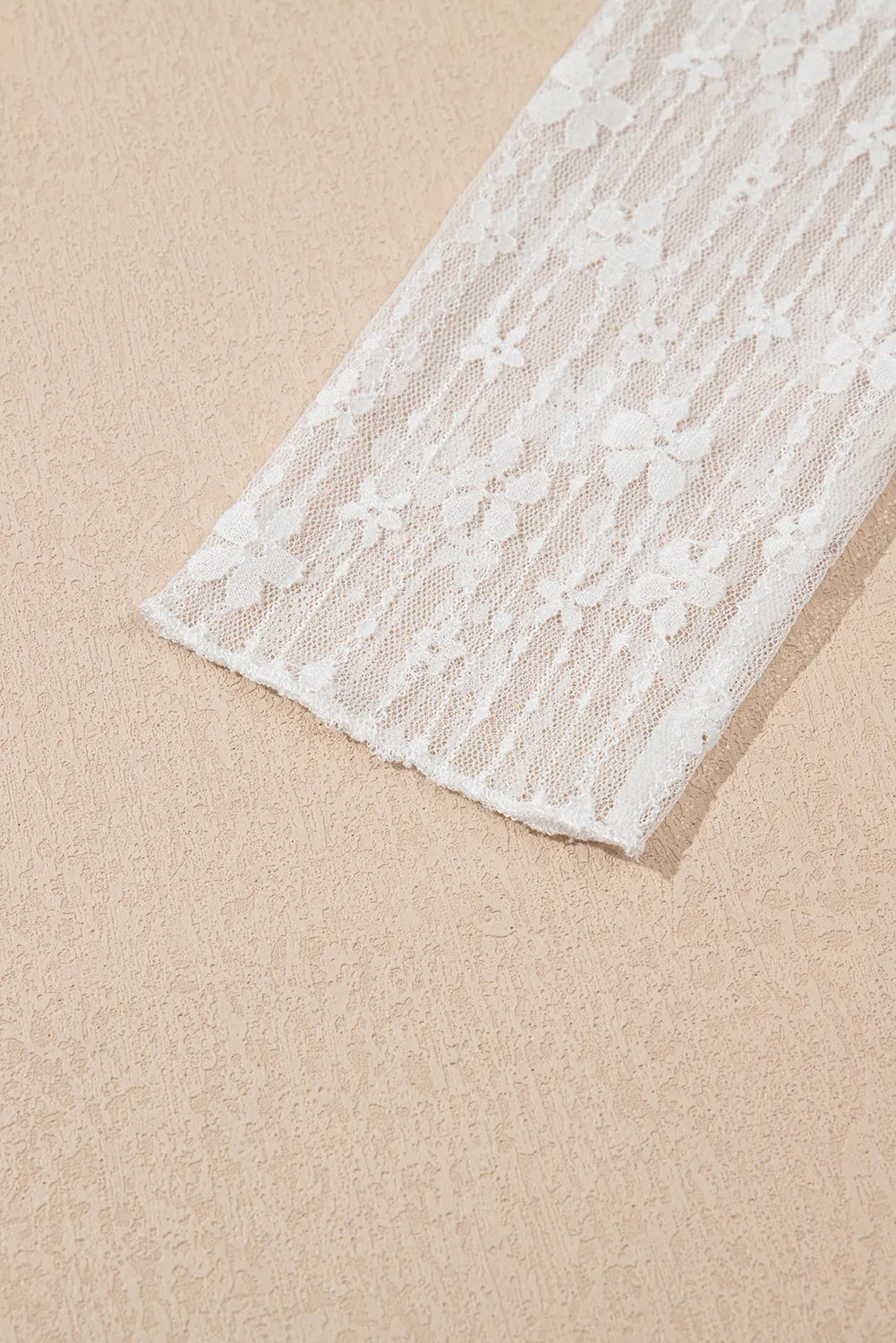Sheer Floral Lace Long Sleeve Slim Fit Top