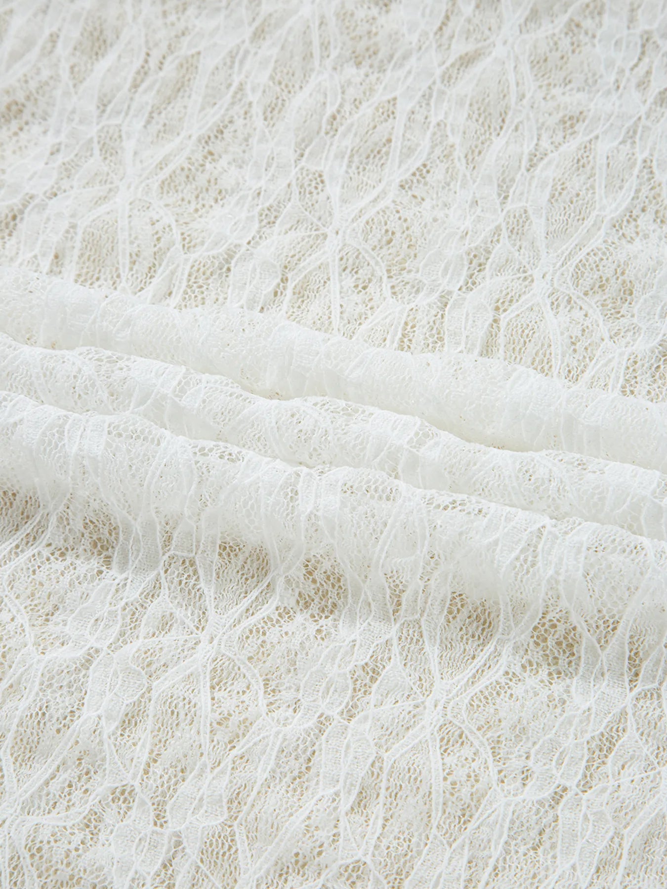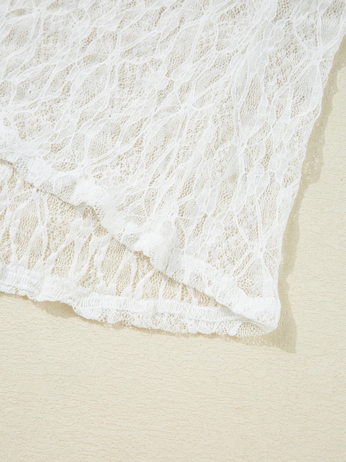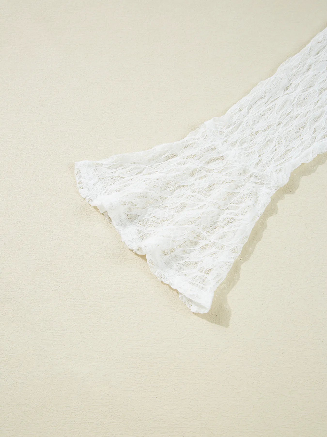 Sheer Lace Bell Sleeve Mock Neck Blouse