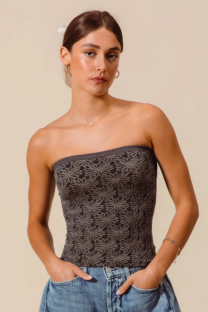 Jacquard Floral Two Tone Seamless Tube Top