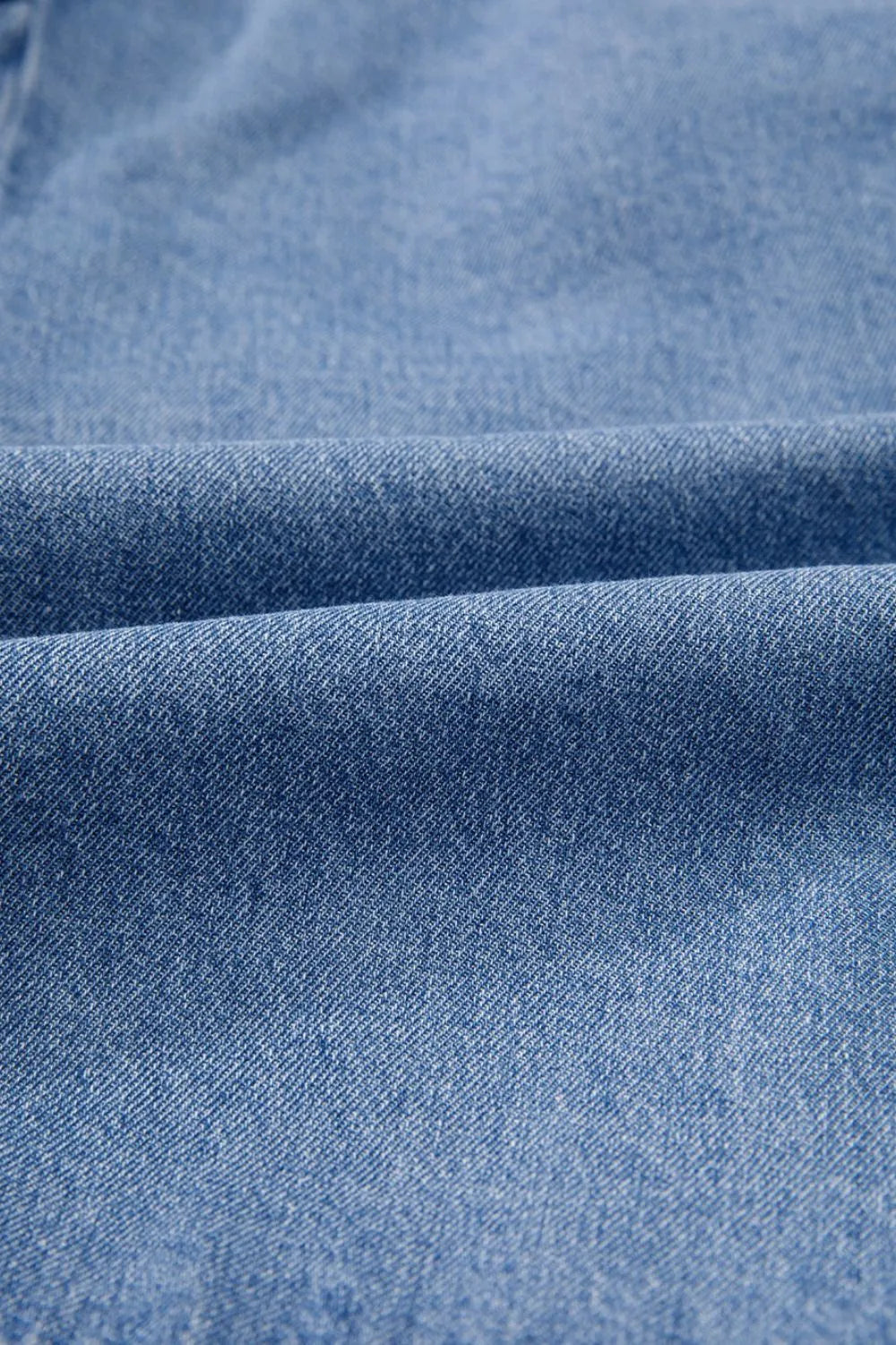 Tied Front Puff Sleeve Peplum Denim Shirt