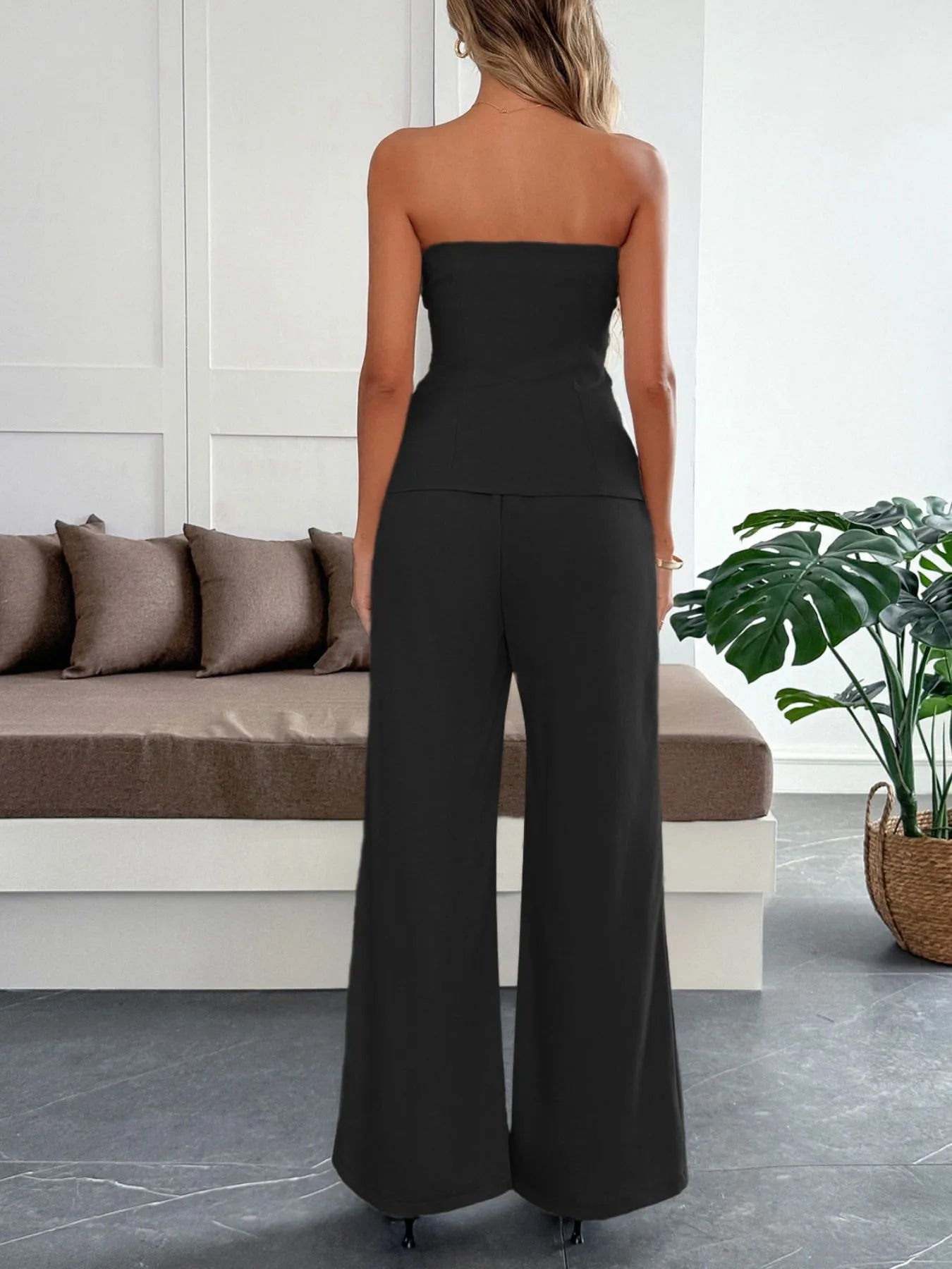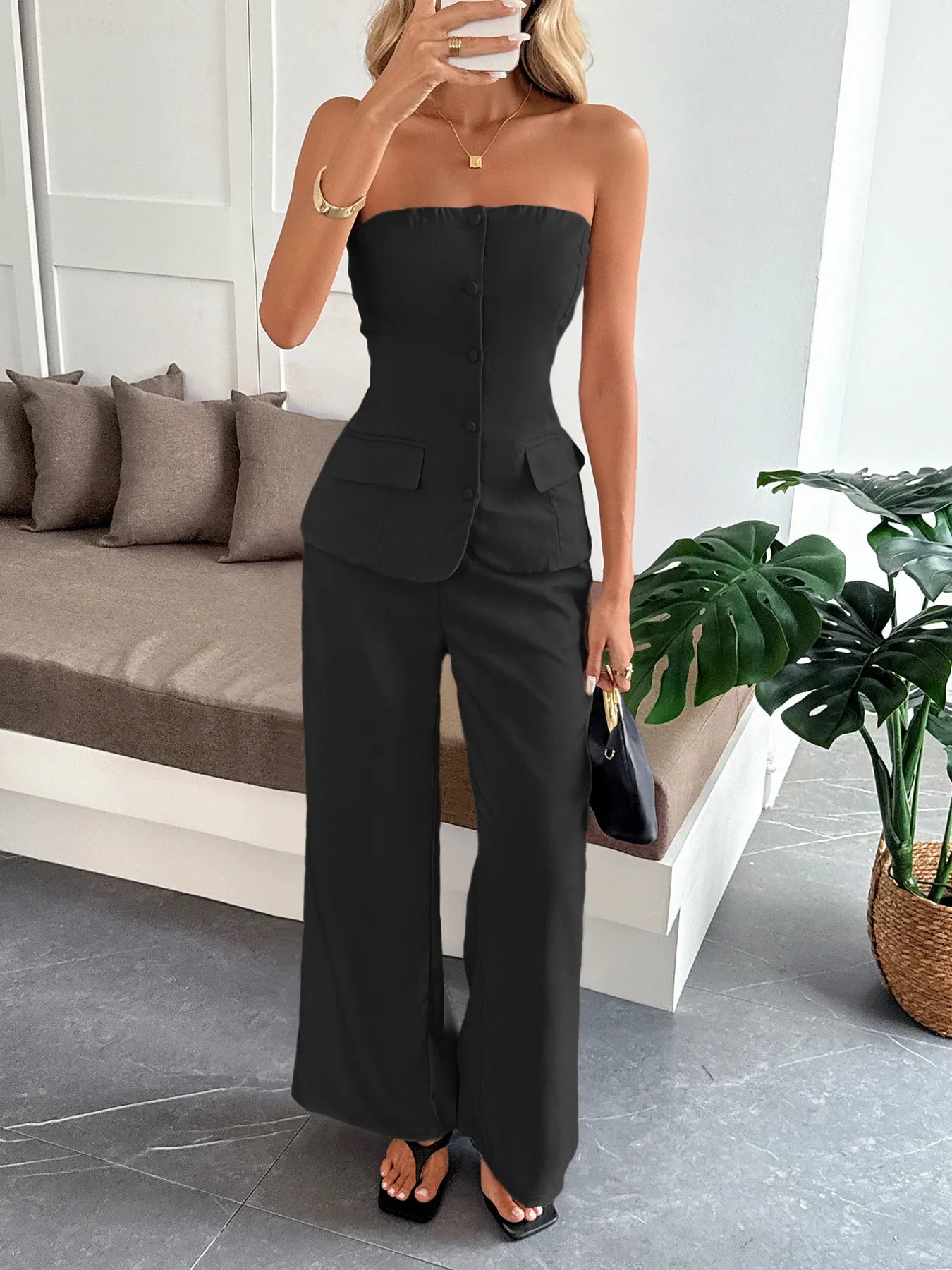 Button Down Tube Top and Pants Set