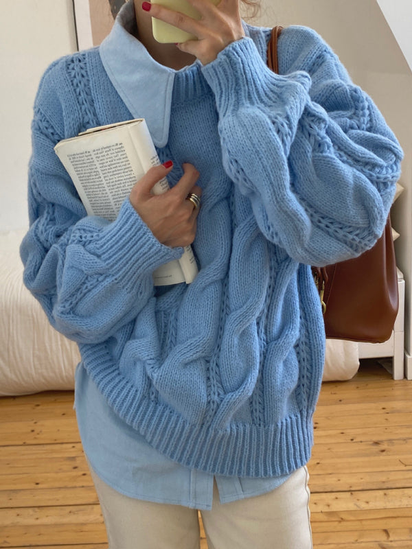 Women's New Lazy Round Neck Twist Thick Pullover Knit Sweater