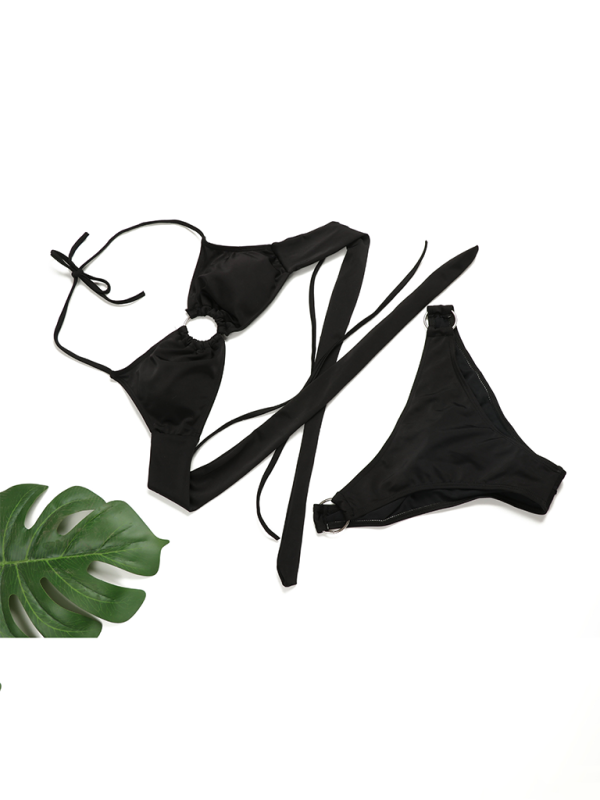Women's Sexy Ring Two-Piece Swimsuit Solid Color Gathered Bikini