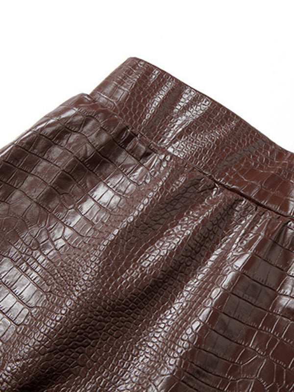 Women's Sexy Tube Top Slimming Hip Skirt PU Skirt Suit