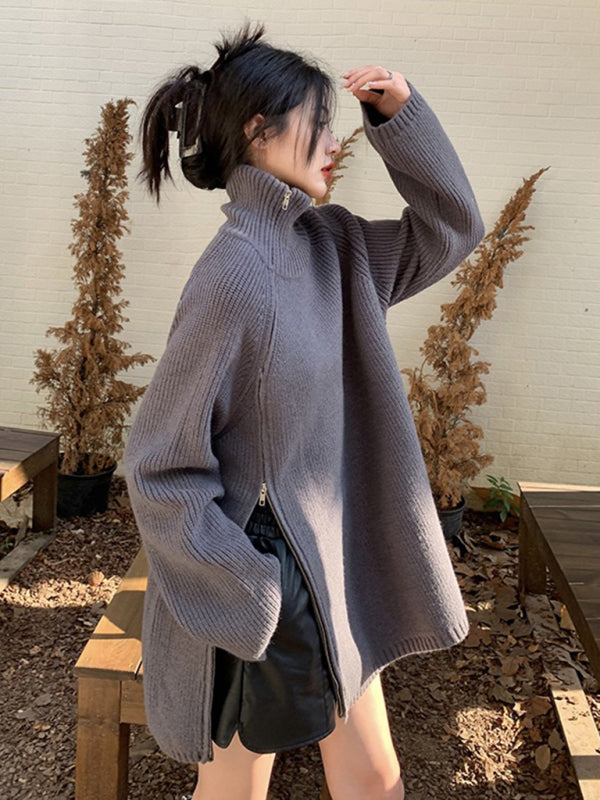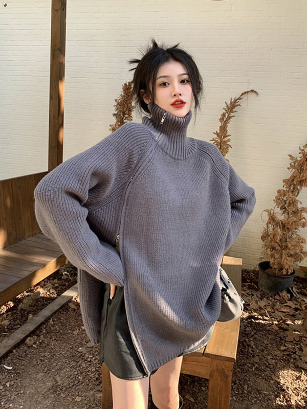 Women's turtleneck sweater with side zipper design