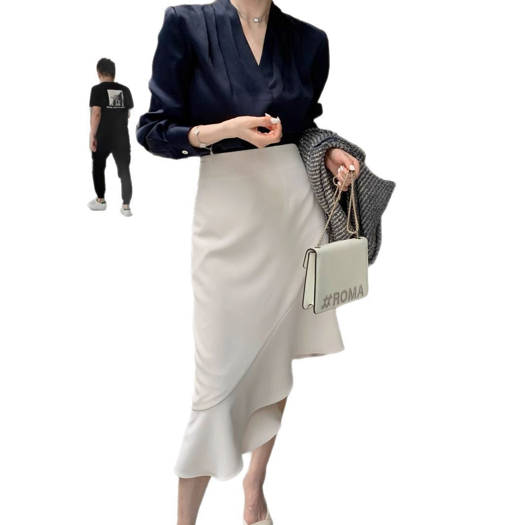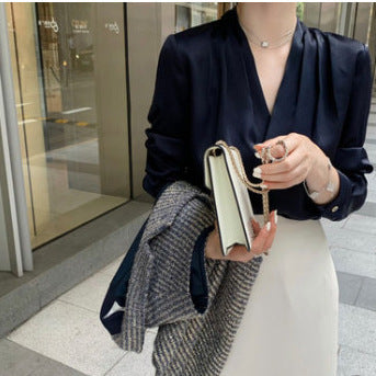 5 Spring And Autumn V-neck White Shirt Women's Long Sleeve
