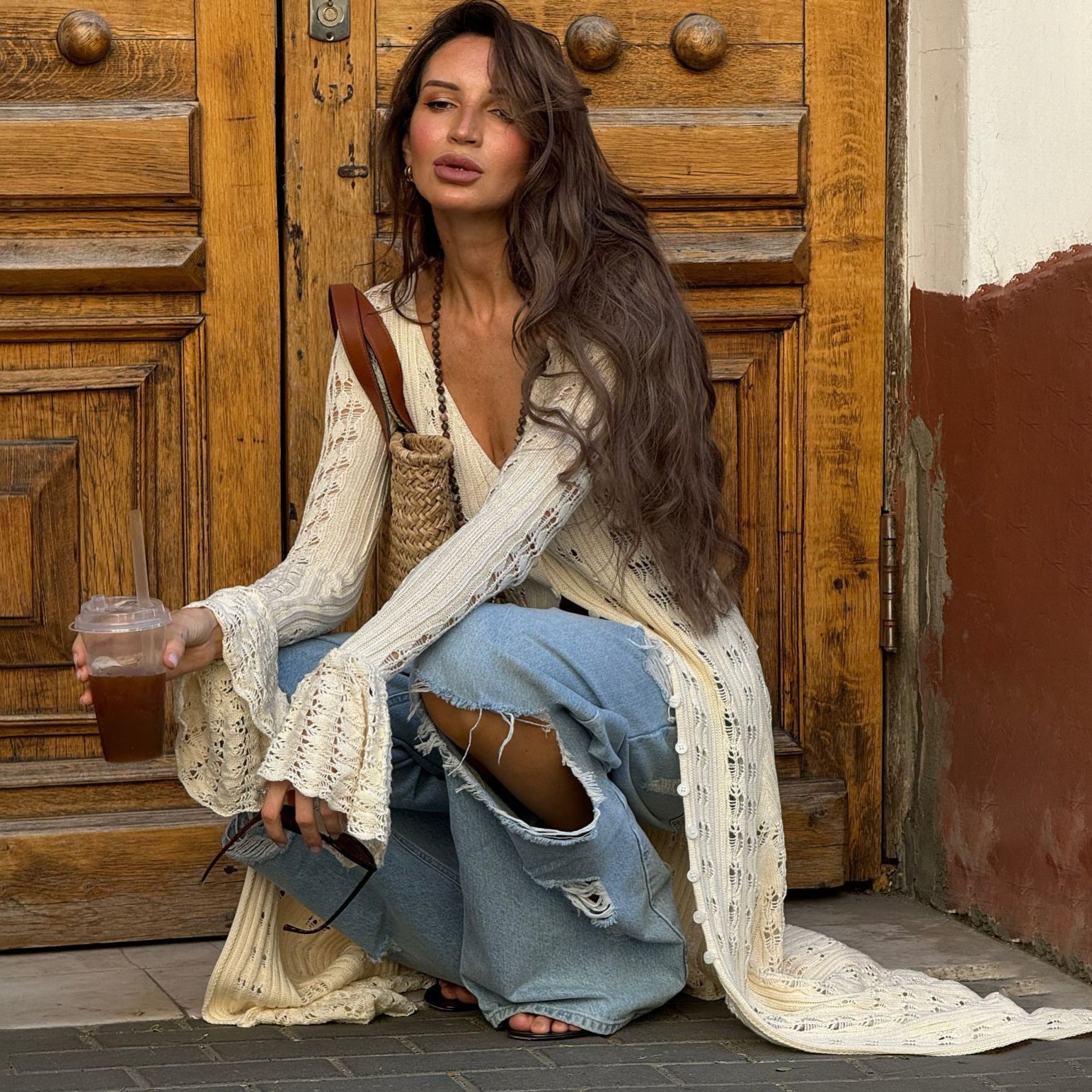 Long Hollow Knit Cardigan