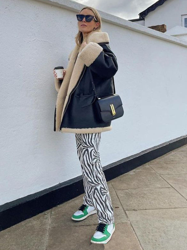 Cashmere leather fur collar composite jacket