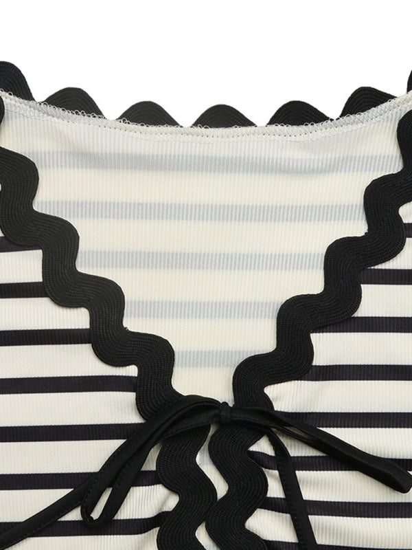 Casual striped lace-up shorts set