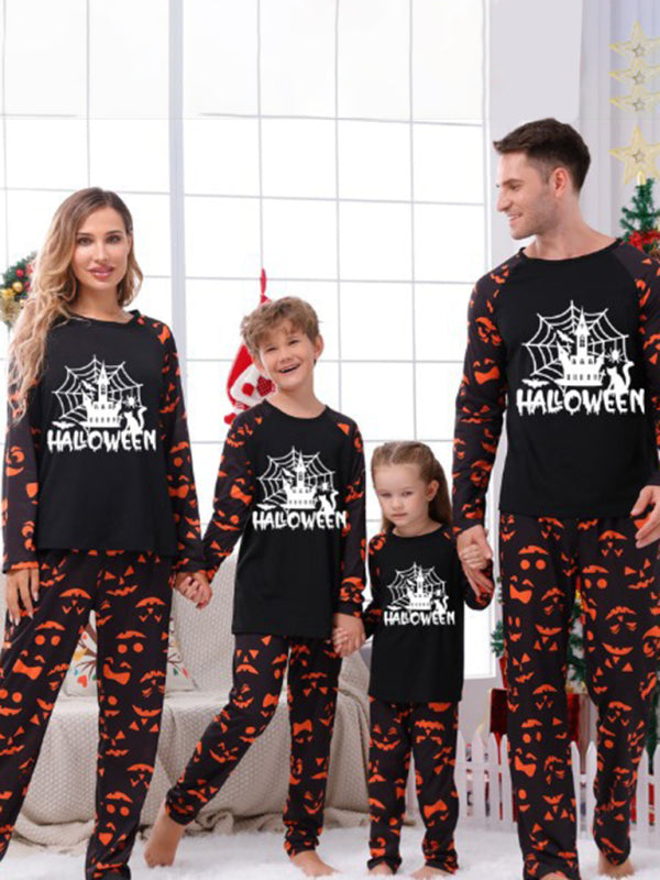 Get into the Halloween spirit with our Halloween parent-child printed home pajamas two-piece set! Made from 95% polyester and 5% spandex, this set features spooky designs perfect for the holiday season. Whether lounging at home or cozying up for a movie night, these pajamas are sure to add some festive fun to your wardrobe.
