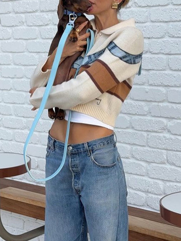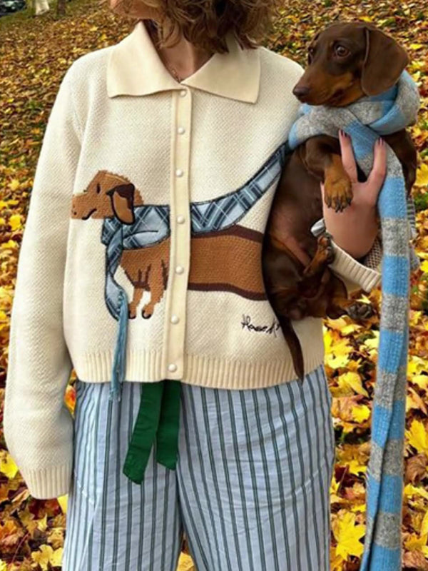Fashion new autumn and winter cute short lapel puppy pattern sweater cardigan