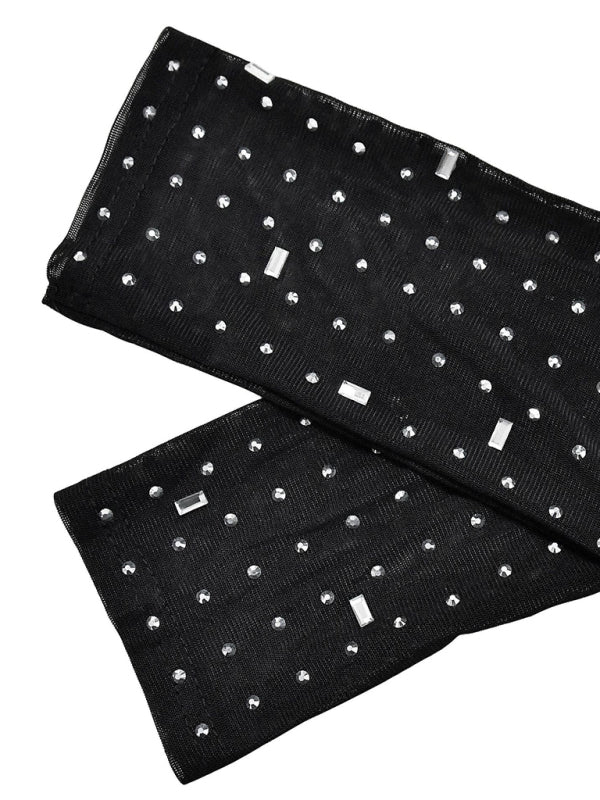 Fashionable women's solid color mesh long-sleeved maxi dress with rhinestones. The simple design makes the boring season colorful and interesting. A variety of matching options make you confident and beautiful. Please use the sizing guide shown in our images when purchasing. Please read each element in the size guide carefully before choosing a size. Sizes are measured manually, and an error of 1-3cm is normal.