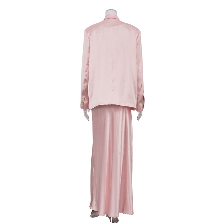 Lapel Long Sleeve Suit Coat Satin Skirt Suit