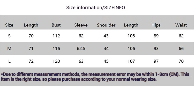 1. Choose the larger size if your size between two sizes. Please allow 2-3cm differences due to manual measurement. 2. Please check the size chart carefully before you buy the item, if you don't know how to choose size, please contact our customer service. 3.As you know, the different computers display colors differently, the color of the actual item may vary slightly from the following images.