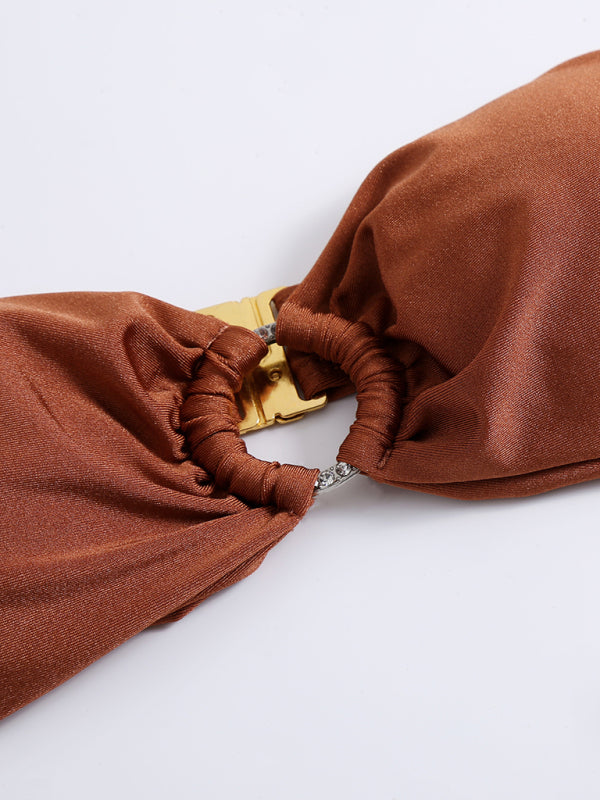 Solid Color Strappy Swimsuit Split Bikini