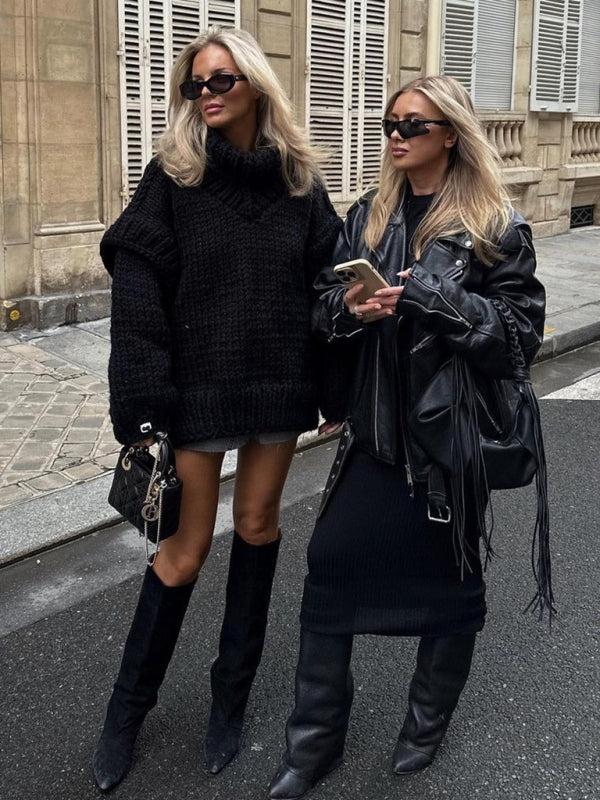 New women's sweater pullover fluffy long sleeve turtleneck sweater