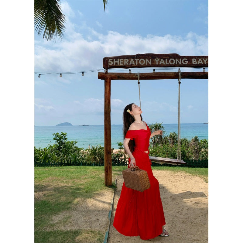 Ruffled One-Shoulder Set