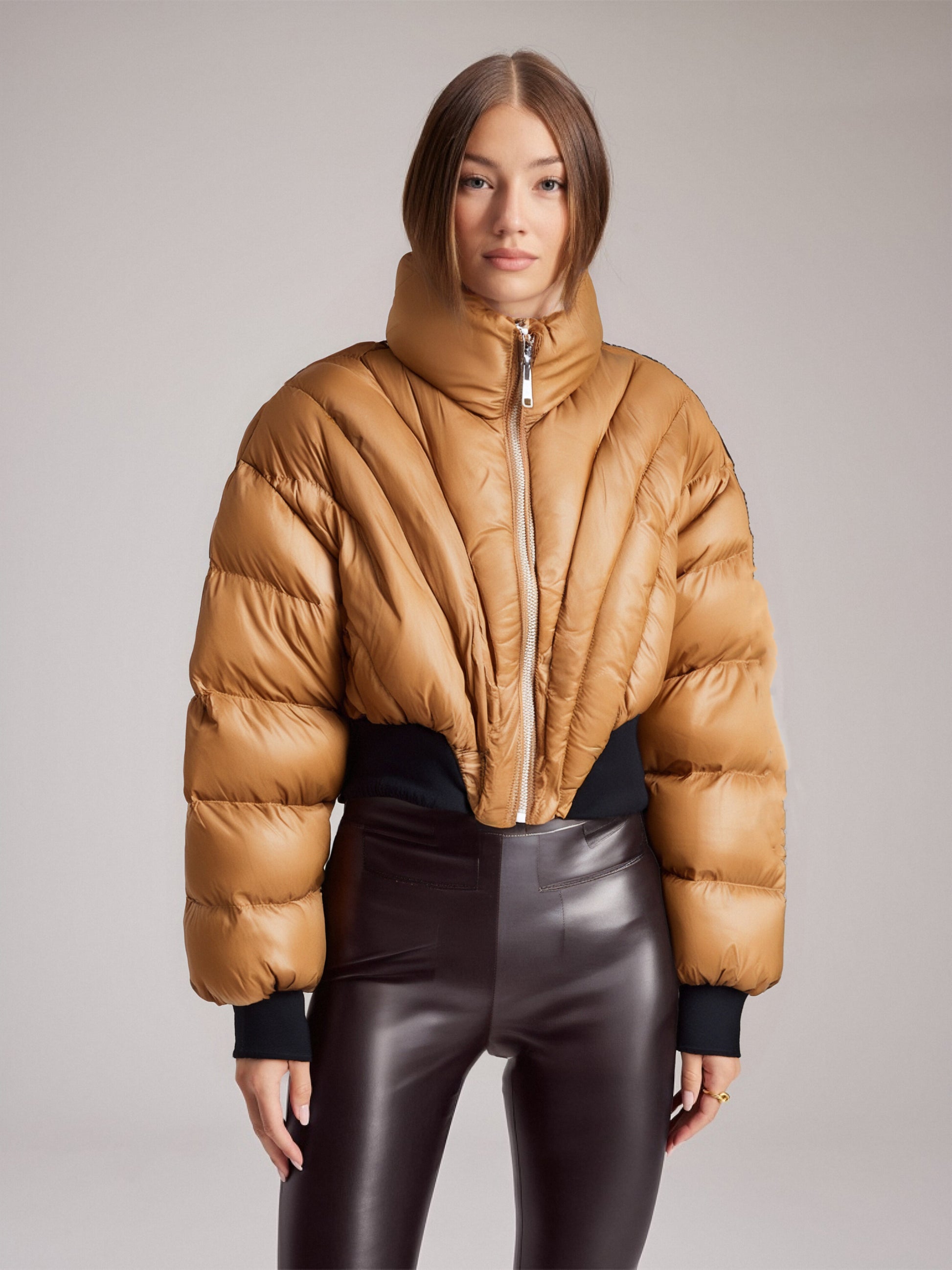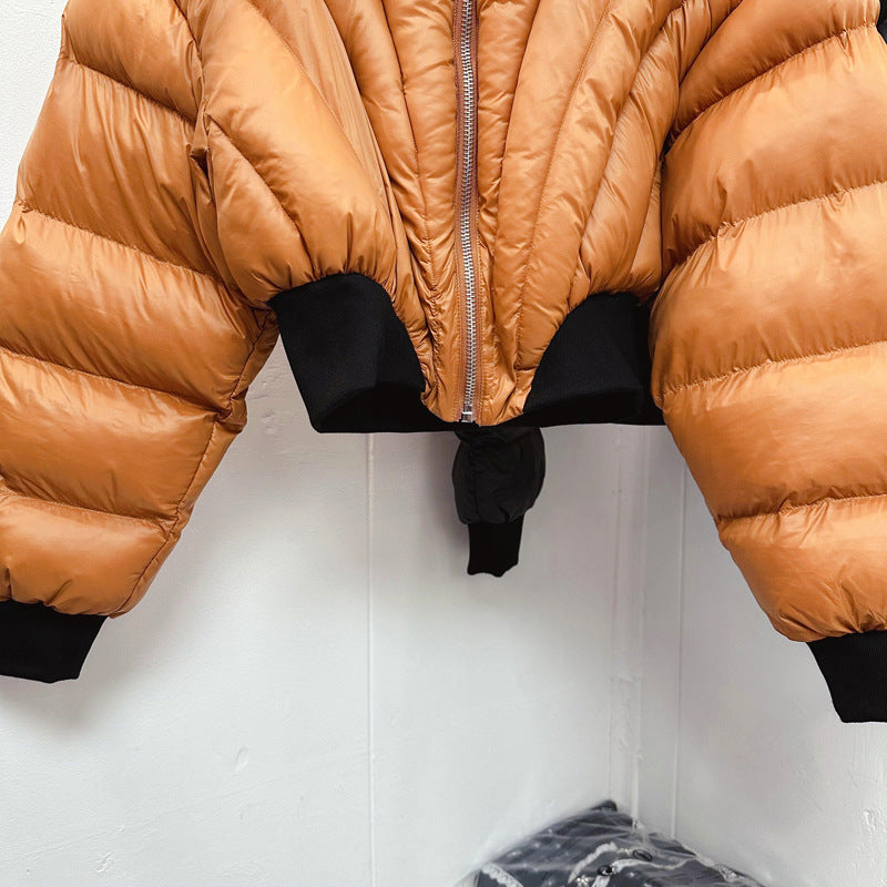 Stand up collar long sleeved striped waistband slimming cotton jacket