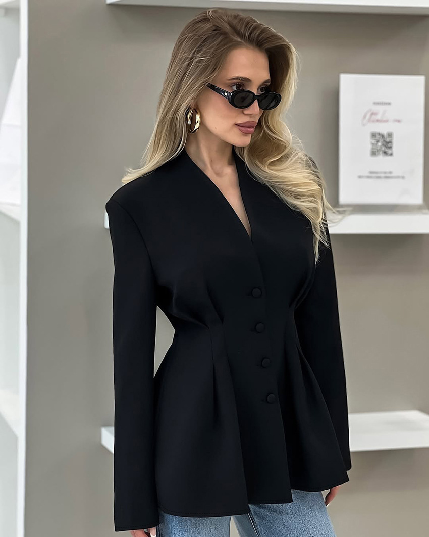 Elegant Fitted Waist-Cinched V-Neck Office Suit