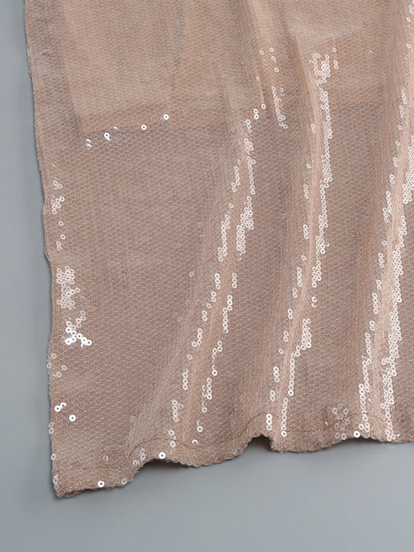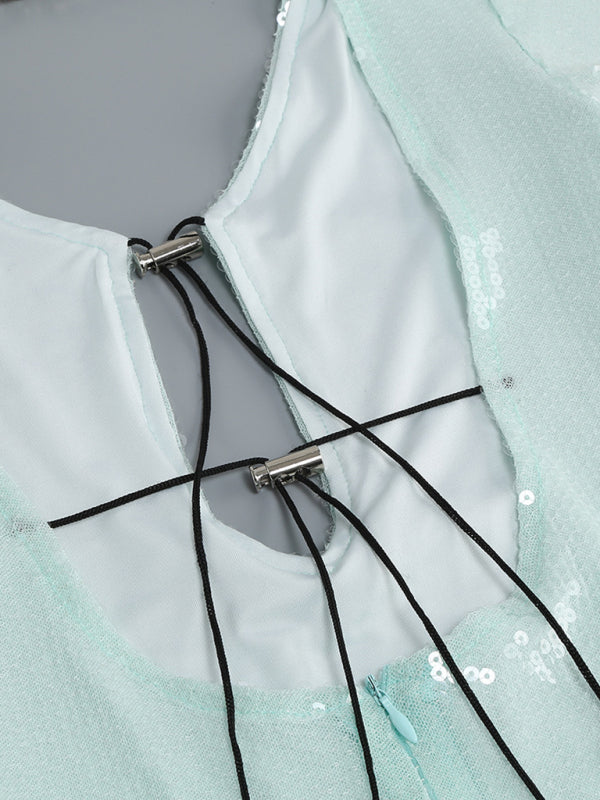 Stylish sequined V-neck backless dress slim fit party dress mid-length dress