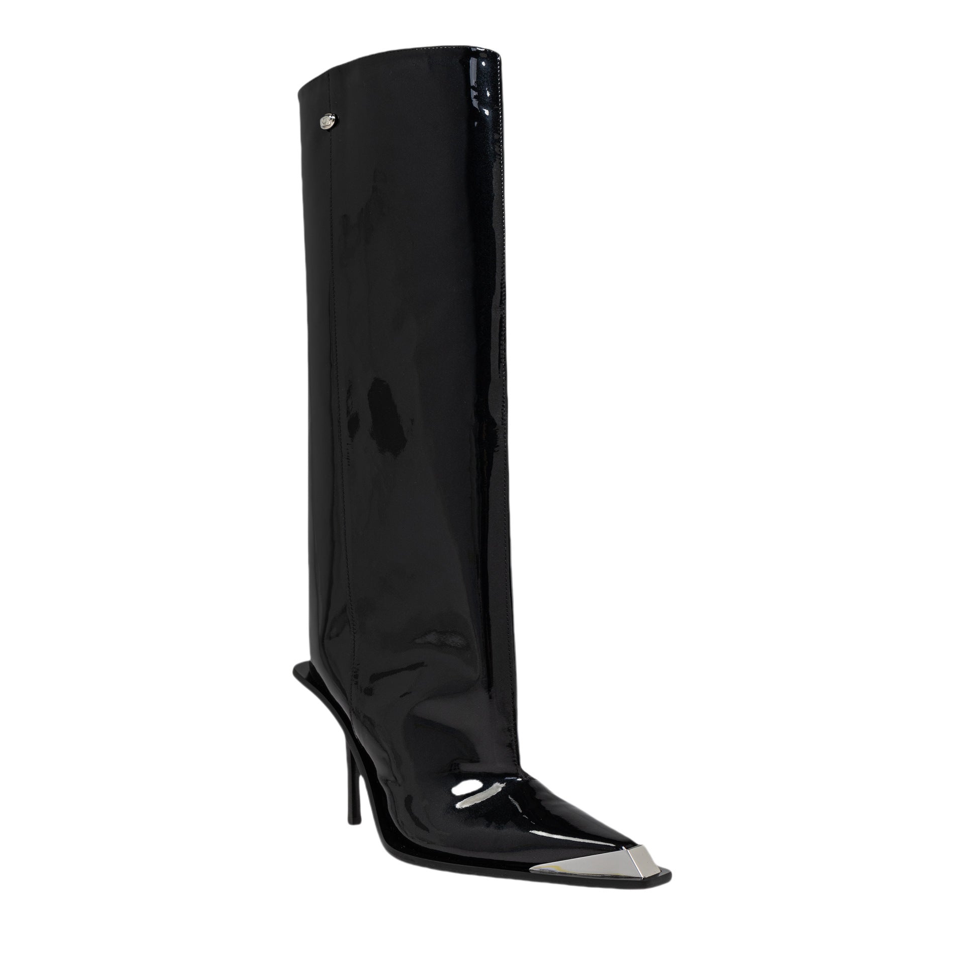 Women's large straight leg boots with metal iron toe medium length large size square toe high-heeled boots