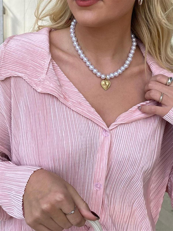 Women's Pleated Shirt Set Straight Trousers Loose Drape Two-piece Set