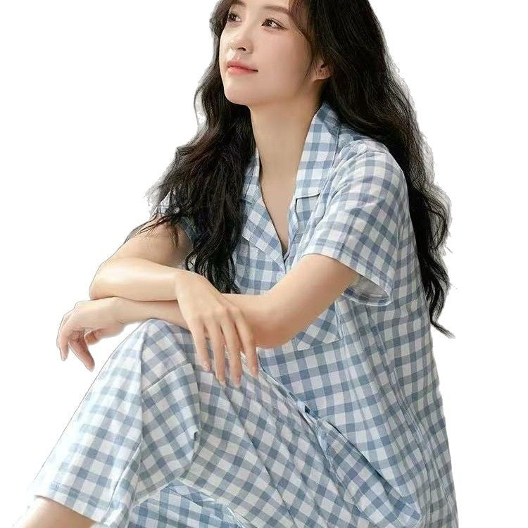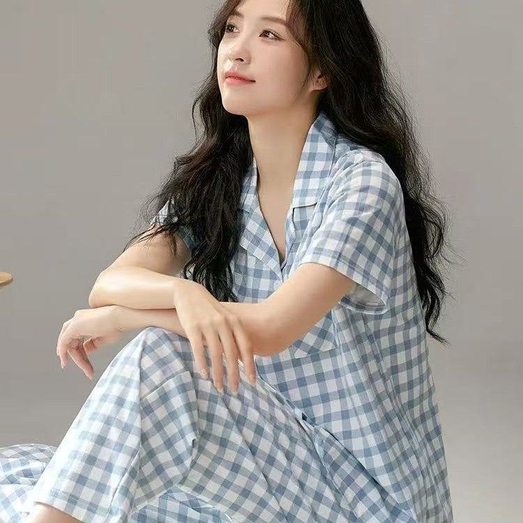 Color: light blue short sleeve trousers suit, green plaid short sleeve trousers suit, pink plaid short sleeve trousers suit, gray plaid short sleeve trousers suit, blue plaid short sleeve trousers suit, yellow plaid short sleeve trousers suit