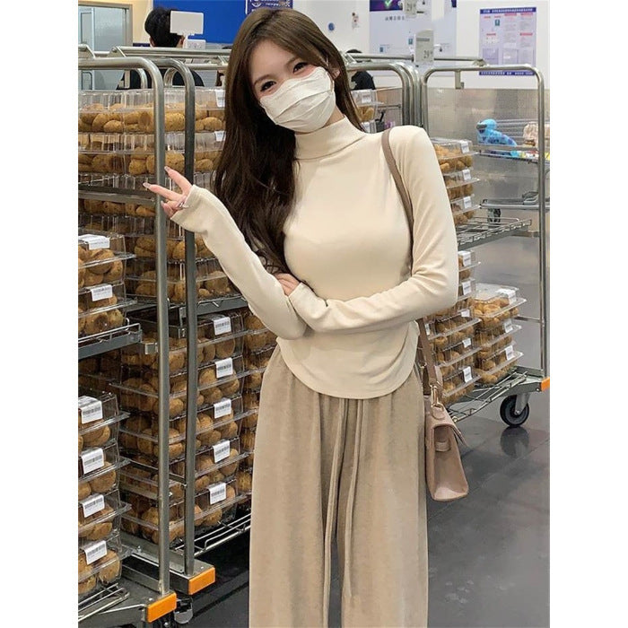 Turtleneck Long Sleeve Drawstring Ruffle Bottoming Top